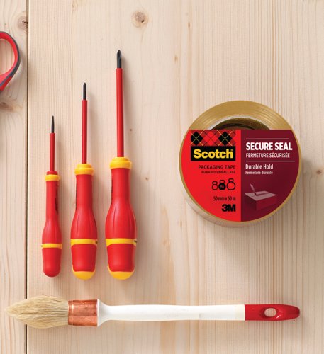 - Scotch Secure Seal Packaging Tape is designed for shipping standard packages and for sealing boxes in storage. The packing tape provides a strong secure seal that resists splitting on application and a durable hold even through rough journeys. Supplied in a 50 metre roll, this brown packaging tape has a width of 50mm.