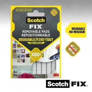 - Scotch-FIX removable adhesive pads are putty pads which are conformable and ideal for lightweight mounting on painted or wallpaper surfaces. Holding up to 300g, these removable adhesive pads stick to a variety of porous and non-porous surfaces. Suitable for temporary fixing of papers, photos, posters, cards and more, the pads leave surfaces residue free when removed, ensuring that painted walls or wallpaper are not marked or damaged.