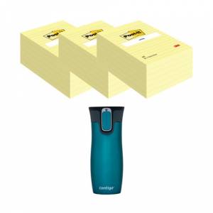 Post-It Notes XXL 101x152mm Lined Yellow 3x6 Pads (Pack of 18) + FOC Contigo Travel Mug