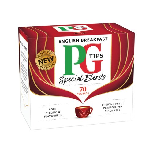 - PG Tips Special Blends English Breakfast??is a strong tea, crafted from the finest black tea leaves from Kenya and Assam, expertly blended to release their bold flavours. Enjoy its rich, full-bodied taste with hints of caramel. Perfect for those who like a stronger start to the day.