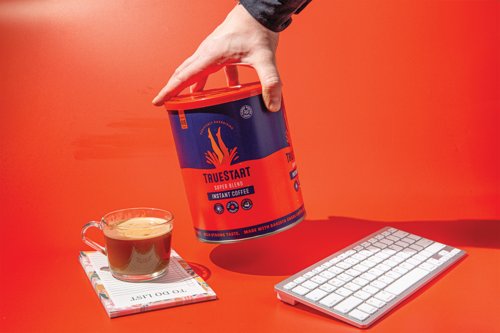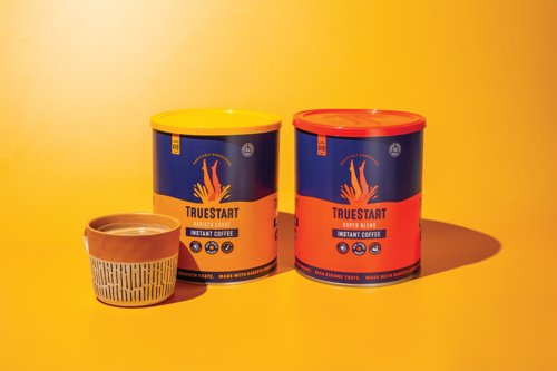 - TrueStart instant coffee is made with speciality grade, 100% Brazilian Robusta beans, giving an exceptional taste that has deep, earthy undertones with hints of dark chocolate and toasted nuts, rounded off with a caramel sweetness. Certified Carbon Negative and B Corp Certified, the coffee has outstanding ethics. Optimised to make you feel amazing, this Barista Grade instant coffee is Lab tested to check that it is mycotoxin free, full of antioxidants and contains a regulated caffeine content. Supplied in 750g tin.