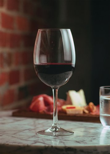 Elegant wine glass designed with larger, rounder bowl to enhance the aroma and flavour of red wine, allowing for optimal oxidation and a richer tasting experience.
