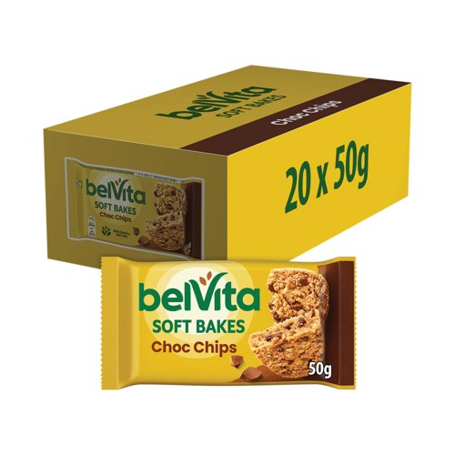 - Kickstart your day in the best possible way with these delightfully soft and chewy Breakfast Biscuits from Belvita. A mineral rich source of fibre, vitamin B6, magnesium and iron, these wholegrain soft biscuits are the perfect accompaniment to a balanced breakfast. With delightfully indulgent chocolate chips, the Belvita Soft Bakes are suitable for vegetarians and supplied in a bulk pack of 20 50g portions.