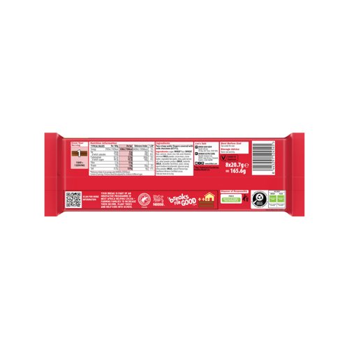 KitKat fingers of slender wafer, sandwiched together with chocolate cream and coated with a layer of smooth milk chocolate. Light yet luxurious, they combine crunch and softness in a yummy treat. Free from artificial colours, flavours or preservatives, this is the perfect solution for that mid-afternoon dip. Supplied in a pack of 8.