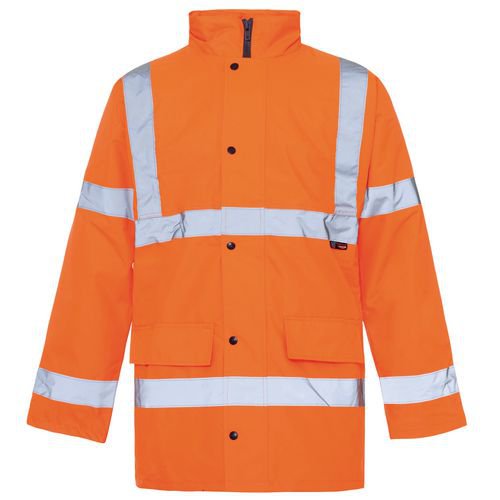 Chest Size cm: 104. Chest Size in: 41. Colour: Orange. Garment Type: Jackets. Gender: Unisex. Material: Polyester. Product Type: Hi-vis clothing. Size: M. Size: Medium. Waist Size cm: 86. Waist Size in: 34.