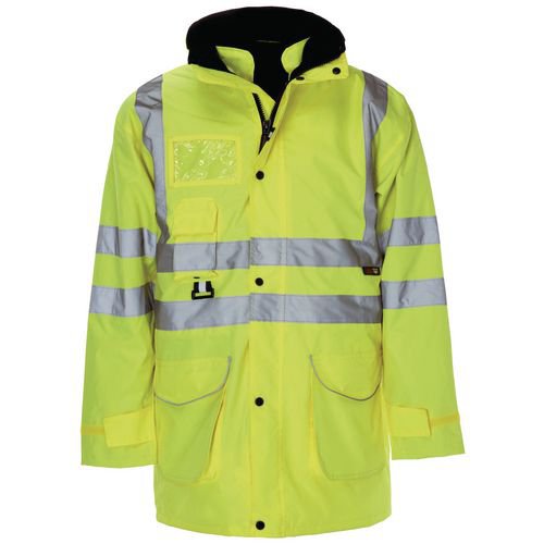 | Hi- vis jacket offers a variety of layering options including: fleece lined parker, lightweight outer jacket or reversible quilted bodywarmer |
