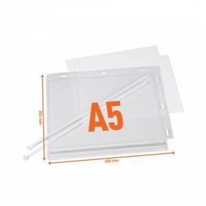 - Water-resistant cable tie pockets tested up to IPX5 standards (protection against water jets from all directions). The pockets are UV-stabilized to prevent fading and peeling and feature a scratch-resistant anti-reflective coating for excellent long term legibility. Ideal for displaying information outdoors such as garden centres, saunas, swimming pools, gates and notice boards. The waterproof pressure closure protects the contents from rain, humidity, dirt, and debris. Quick and easy to attach thanks to the 2 enclosed cable ties provided in long or Euro holes. The pockets can be used in both portrait and landscape orientations. Includes 2 160gsm A5 inserts per pack, for use indoors, outdoors and in high humidity applications up to 60C.
