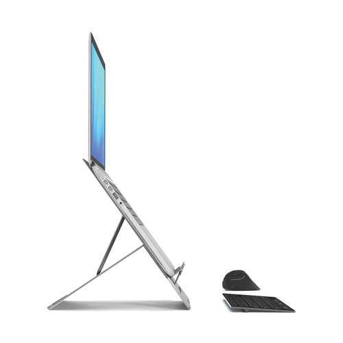 Ergonomic laptop stand for business comfort and pain-free work. Developed to fit the majority of the laptops available on the market. The height adjustable design allows the standard to raise the laptop to a comfortable working position. A versatile ergonomic accessory designed to comply with UK and European health and safety regulations. Created with the user in mind: instant setup and pack away, lightweight and thin for true mobility, easily adjustable screen elevation and inclination. Refined design, minimalist but very sturdy, guaranteed against malfunction for life.