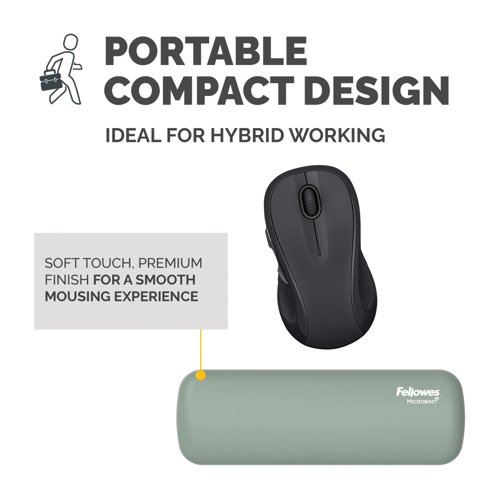 - Enjoy consistent support and lasting comfort with the Breyta palm wrist rest, designed to enhance your mousing experience. Its soft-touch surface features an anti-dust coating for a smooth, premium feel, while built-in Microban protection works around the clock to help prevent the growth of bacteria-keeping your workspace cleaner. With a lightweight, compact design, it's perfect for hybrid working and easy to take on the go. Fully recyclable through the Fellowes takeback scheme.