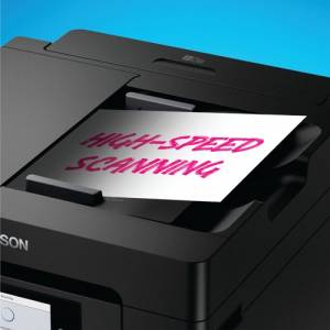 - Print, scan, copy and fax with this easy-to-use EcoTank printer, that delivers an exceptionally low cost per page. A4 jobs can be accomplished quickly thanks to fast print and scan speeds, two A4 250-sheet front trays, a 50-sheet rear feed, and a 50-sheet A4 ADF. Print how you like with mobile printing, Ethernet and a 10.9cm LCD touchscreen.