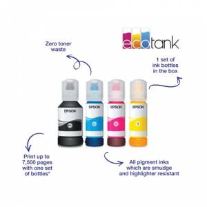 Print, scan, copy and fax with this easy-to-use EcoTank printer, that delivers an exceptionally low cost per page. A4 jobs can be accomplished quickly thanks to fast print and scan speeds, two A4 250-sheet front trays, a 50-sheet rear feed, and a 50-sheet A4 ADF. Print how you like with mobile printing, Ethernet and a 10.9cm LCD touchscreen.