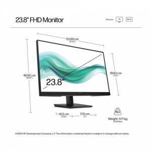 Expand your view in comfort with a spacious, thoughtfully designed 23.8 inches of workspace. Boasting a crisp, smooth flat screen and a simple yet functional design, this HP Series 3 Pro 23.8 inch FHD monitor lets you work better all day.