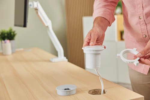 - Bring power seamlessly into your workspace with this compact, recessed desk outlet designed for easy access and minimal disruption. Featuring a single 230v power socket and a USB-C port with up to 30W output, it's ideal for charging devices without clutter. The unit fits neatly into standard 60mm or 80mm grommet holes, making installation straightforward. Its discreet design helps eliminate bulky adapters and tangled cables, keeping your desktop clean and organised. A sliding cover protects the ports from dust and debris, and hides the unit when not in use. With a generous 2-metre power cable and plug, setup is flexible and hassle-free.