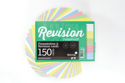 These Silvine unbound presentation cards measure 6 x 4 inches (A6) and are ideal for presentations and revision. Consisting of 50 white and 4 assorted (blue, green, pink and yellow), Each card has ruled feint lines with space for a headline. Perfect for colour coding subjects or notes for presentations, these cards are supplied in a pack of 8 (150 cards per pack).