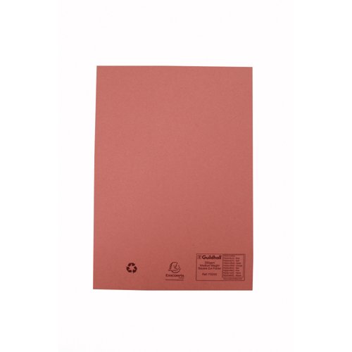 - These environmentally friendly Guildhall square cut folders are made from 100% recycled, mediumweight 250gsm manilla. Suitable for filing both A4 and foolscap documents, each folder can hold up to 100 sheets of 80gsm paper. This pack contains 100 pink folders.