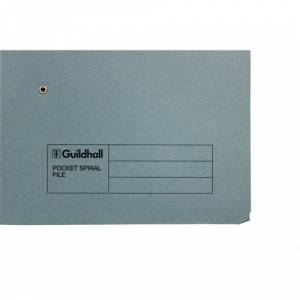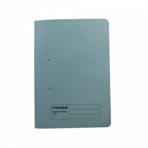 - These strong 285gsm folders create a stylish filing solution for reports, presentations and more and are ideal for use in the office, home or classroom. The metal spiral fitting secures punched papers in place and allows them to be worked on whilst in the file. The useful pocket also allows you to store unpunched papers. These colourful files can be used as part of a colour coordinated filing system and have a 350 sheet capacity. This pack contains 25 foolscap files in blue.