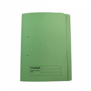 - These strong 285gsm folders create a stylish filing solution for reports, presentations and more and are ideal for use in the office, home or classroom. The metal spiral fitting secures punched papers in place and allows them to be worked on whilst in the file. The useful pocket also allows you to store unpunched papers. These colourful files can be used as part of a colour coordinated filing system and have a 350 sheet capacity. This pack contains 25 foolscap files in green.