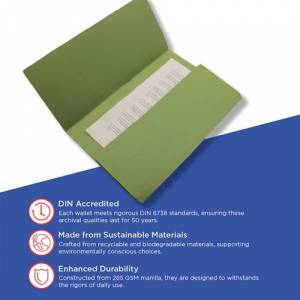 - This handy Exacompta Guildhall document wallet is made from strong 285gsm manilla and is ideal for home, office or classroom filing. The wallet has a 32mm gusset and can hold up to 180 sheets of A4 or foolscap paper. This pack contains 50 green wallets, ideal for colour coordinated filing.