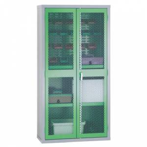 Mesh door cupboards Tall, double door cupboard, 4 shelves + louvre panel - choice of four colours