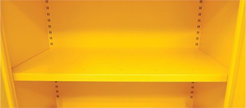 - Safely store your flammable liquids, chemicals and paints away in your hazardous substance storage cabinet from VFM, and this extra shelf will help you to store even more. The bright yellow colour is indicative of dangerous substances and serves as a warning to all, while the shelf and cabinet are both designed especially for the safe and secure storage of hazardous substances according to COSHH regulations. The shelf is easily fitted and it adjustable.