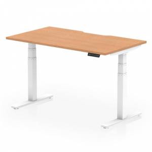 Air 1400 x 800mm Scalloped Edge Height Adjustable Office Desk Oak Top White Leg