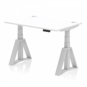 Air 1200 x 800mm Height Adjustable Office Desk White Top Cable Ports Silver Leg with Piste Foot