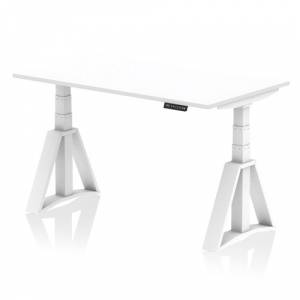 Air 1400 x 800mm Height Adjustable Office Desk White Top White Leg with Piste Foot