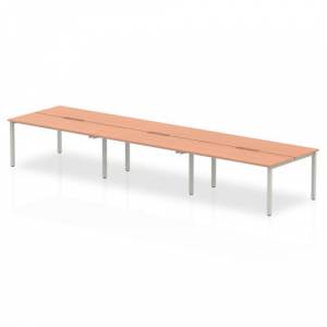 Evolve Plus 1400mm B2B 6 Person Office Bench Desk Beech Top Silver Frame