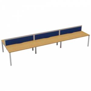 The Jemini Bench System Desking is ideal for offices where space is at a premium. Each bench desk has a tubular steel leg construction with an MFC finish floating top effect. The scalloped desktops allow for easy access to cables. Each bench desk measures 4200x1600x730mm.