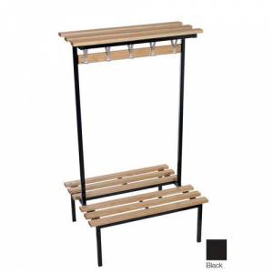 | Double-sided bench with wood top shelf, coat rail and hooks |