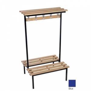 Colour: Blue. Length mm: 3000. Type: Double bench with wood top shelf.