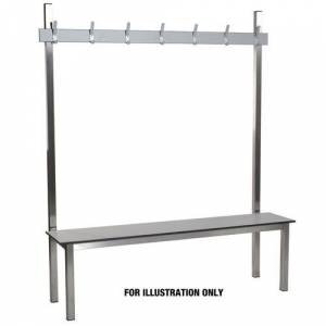 - Bench Height mm: 450. Colour: Grey. Depth mm: 400. Frame Colour: Grey. Frame Material: Steel. Height mm: 1750. Material: Steel/wood. No. of Hooks: 12. Seat Height mm: 450. Type: Cloakroom bench. Width mm: 2500.