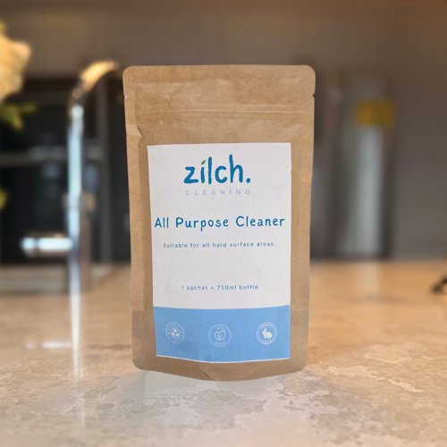 - The Zilch All Purpose Cleaner is suitable for all hard, sealed surfaces, including treated wood, aluminium, and stainless steel. Designed to clean, degrease, and leave surfaces shining-with a quick-dry, streak-free finish, it leaves behind a long-lasting Mango and Peony fragrance. Supplied in a pack of 10, each pre-measured dose will fill 750ml bottles (sold separately).