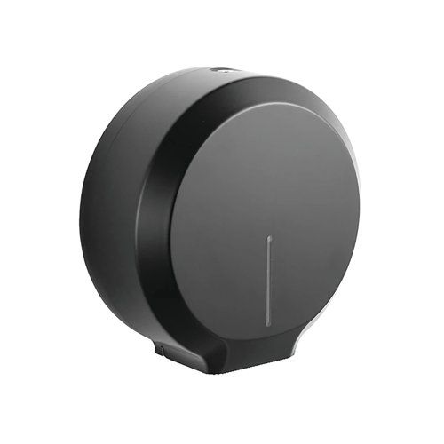 - The Essence washroom dispenser is designed to meet the demands of busy commercial spaces. Ideal for schools, offices, retail and hospitality settings, delivering effective and reliable performance. The dispenser holds a single mini jumbo toilet roll with a maximum length of 200 metres and a diameter of up to 250mm. Made from robust ABS plastic which is impact resistant, in a modern matte black finish.