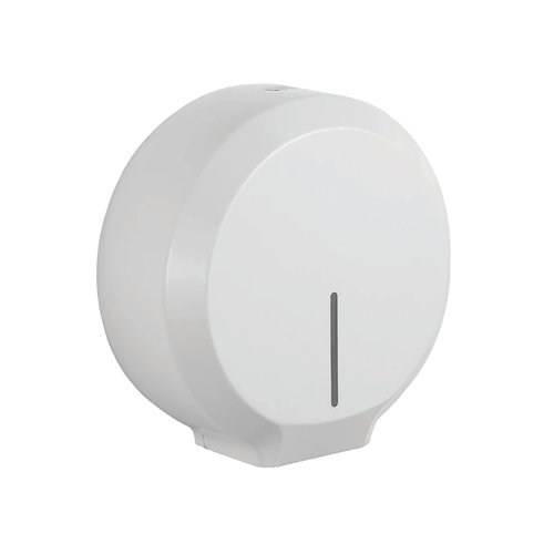 - The Essence washroom dispenser is designed to meet the demands of busy commercial spaces. Ideal for schools, offices, retail and hospitality settings, delivering effective and reliable performance. The dispenser holds a single mini jumbo toilet roll with a maximum length of 200 metres and a diameter of up to 250mm. Made from robust ABS plastic which is impact resistant, in a modern gloss white finish.