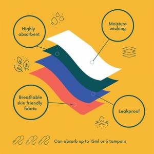 - These fully washable, absorbent and very discreet pants are designed for periods and light bladder leaks. Featuring four layers of absorbent gusset fabric with a top layer of moisture wicking cotton; a second super absorbent layer; plus a third layer of breathable TPU which stops any moisture penetrating the outer layer. The outer layer is made from soft, breathable fabric. Suitable for use for up to 3 years, saving you money and helping the planet. Designed to be absorbent but discreet (no VPL). Supplied in black.