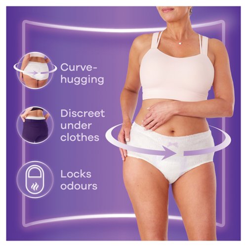 - Always high-waisted incontinence underwear is designed specifically for women experiencing moderate to heavy bladder weakness. These disposable pants are engineered to look and feel like regular underwear while providing advanced protection through a thin triple-layer core. Made from soft cotton-like fabric with a feminine print, the pants hug to the curves for a smooth look under clothes. Supplied in a pack of 8.