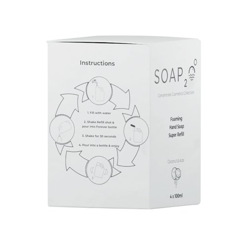 - Revolutionary hand soap designed to deliver a luxurious hand wash while dramatically reducing environmental impact. Supplied in a compact, 100ml, aluminium refill bottle, this hand soap refill creates 4 litres of rich, premium foam soap all without shipping a single drop of water or single-use plastic. By removing water and single-use plastics from the supply chain, transport emissions, storage space are cut and unnecessary waste is avoided. Simply add water to the 4-Litre forever bottle (sold separately) and pour in the contents from this 100ml aluminium refill bottle.