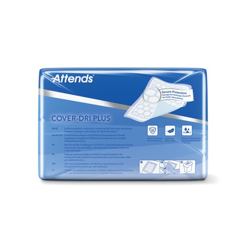 - Designed for those who require light to moderate protection against urinary incontinence, the Cover-Dri Plus bed pad can be used for the surface protection of beds in addition to clinical procedures where non-sterile containment is required. Featuring a hexagonal quilt design, with individual cushions that contain fluff and super absorbents to quickly absorb and help to lock away fluid. Supplied in pale blue, the bed pad measures 400 x 600mm and this pack contains 6 packs of 50 pads (300 pads in total).