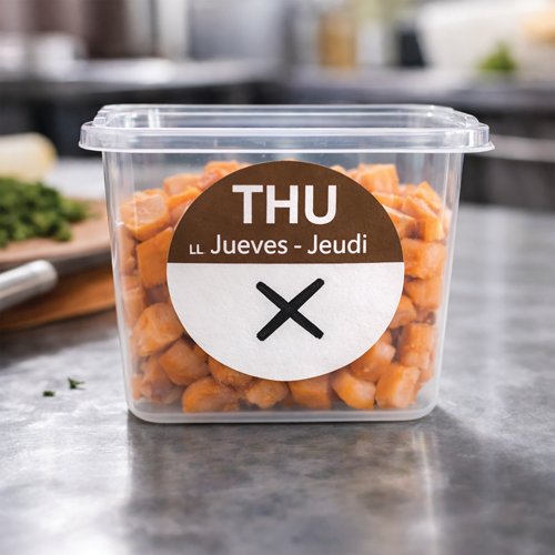 - Clear colour coded day labels to support FIFO food rotation in professional kitchens. Helps reduce waste improve organisation and maintain compliance in catering and hospitality environments.
