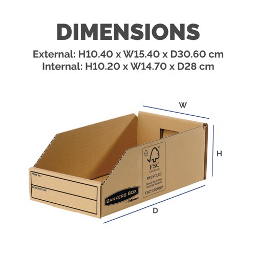 - Provide economical storage around your home or office for all types of components, using the Bankers Box Earth Series Parts Bin. Each parts bin features a large labelling area for easy identification of contents at a glance, leaving you free to organise and sort your filing system quickly and easily. These parts bins are environmentally friendly and are manufactured using 100% recycled materials.