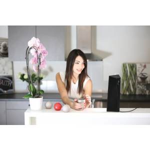 The combination of 2 types of Osram LEDs will bring optimal and flexible light quality in accordance with the latest light recommendations. The position one gives enriched white light on the most effective blue wavelengths in the "max" position for light therapy sessions. The white light becomes warmer (orange-yellow colour) when the intensity is reduced for comfort use as a desk lamp or auxiliary lamp throughout the day. On position two, the light is a specific soft blue which is just as intense as the intense white light.