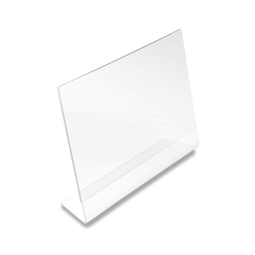 Announce's A4 Landscape slanted literature display stands are a classic design providing stylish and clear presentation. With the angled design the display stand rests safely on counter tops to clearly demonstrate key messaging to your customers. The versatile design allows for quick and simple changes to your content by simply inserting the new content sideways into the stand. Enabling you to keep your messaging up to date.