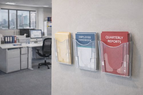 Introducing the 5 Star A4 Portrait wall pocket literature file with wall fixings. The crystal clear design allows for easy viewing of wall pocket contents and reduces clutter whilst maximising space.