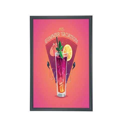 A very neat narrow 15mm profile snap frame for smaller sizes. It is so easy to clip open the aluminium frame to access your poster or graphic image which is protected by an anti-glare plastic cover sheet. Available in grey powdercoat finish.