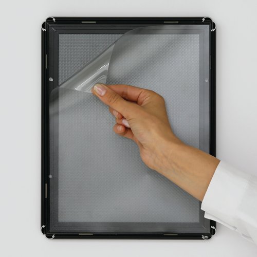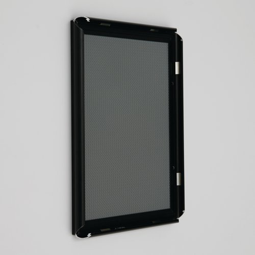 A very neat narrow 15mm profile snap frame for smaller sizes. It is so easy to clip open the aluminium frame to access your poster or graphic image which is protected by an anti-glare plastic cover sheet. Available in black powder coat finish.