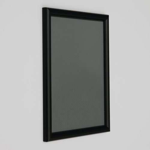 - A very neat narrow 15mm profile snap frame for smaller sizes. It is so easy to clip open the aluminium frame to access your poster or graphic image which is protected by an anti-glare plastic cover sheet. Available in black powder coat finish.