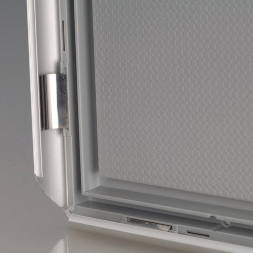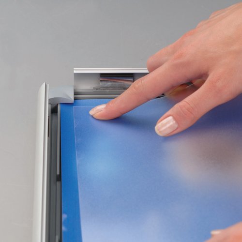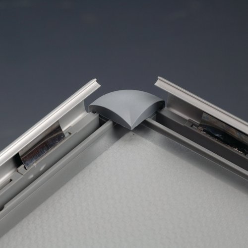 The standard 25mm optiframe snap frame. It is so easy to clip open the aluminium frame to access your poster or graphic image which is protected by an anti-glare plastic cover sheet. Available in silver anodised finish.