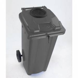 - Capacity L: 240. Colour: Grey. Depth mm: 740. Height mm: 1070. Material: UV stabilised polyethylene. Product Type: Two wheel bins. Type: 2 wheeled bins with bottle bank aperture and lid lock. Width mm: 580.