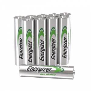 - Save money on expensive disposable batteries with this pack of 10 Energizer AAA Rechargeable Batteries. These extra-high power batteries use NiMH technology to provide long-lasting, rechargeable power. You can recharge them over a hundred times without depleting available power, ensuring that your electronic devices keep running for longer. They're the perfect choice for digital cameras, MP3 players, portable media devices and more.